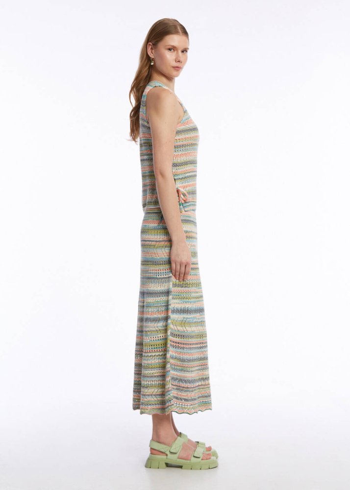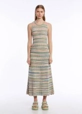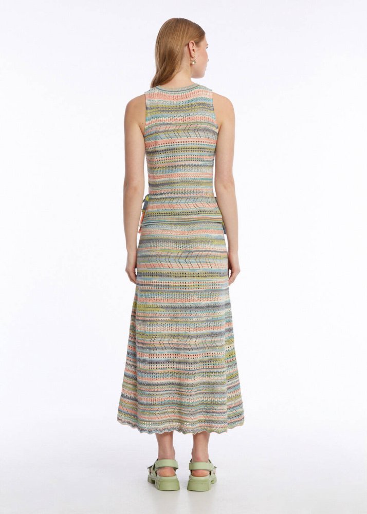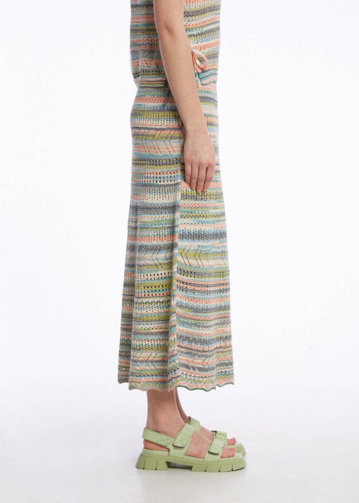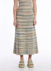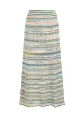 Yeşil, pembe ve mavilerin pastel tonlarda bir araya geldiği bu renk geçişli çizgili maxi triko etek, yazlık kombinlerinizin favorilerinden olmaya adaydır. Hem gündüz hem de gece kombinlerine zahmetsizce uyum sağlayacak çağdaş triko stili ile maksimum kullanışlılık sunan etek, zarif triko detayları ile de fark yaratır. Rahat kesimi, mükemmel kalıbı, pamuk ağırlıklı İtalyan iplik kalitesi ile kusursuzdur.
