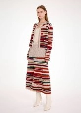 Çarpıcı geometrik stili ile ilk bakışta fark yaratan renk bloklu yuvarlak yaka Knitss hırka, kaşmir ve pamuk gibi geri dönüştürülmüş İtalyan ipliklerinden üretildi. Turuncu, bordo ve kırmızıların hakimiyetinde cesurca seçilen renk geçişleri ile tasarlanan çağdaş modeli ve ince triko işçiliği ile hayranlık uyandırır. Enerjik ve özgün stili ile kombinlerinize canlılık katar.