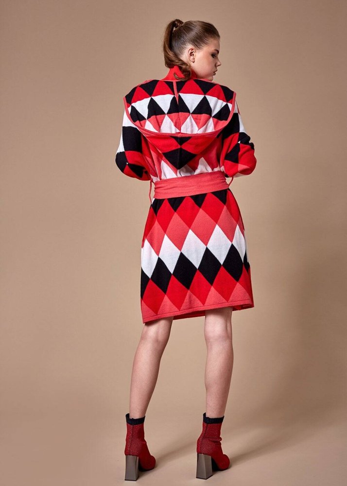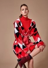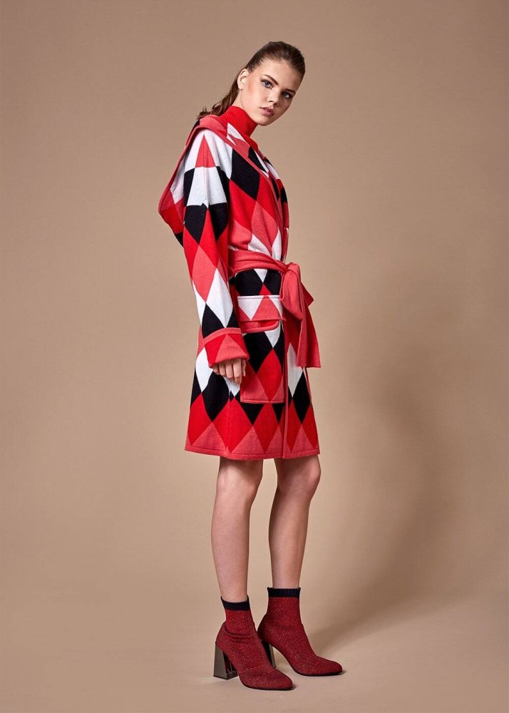 Renkli Fuşya Kaşmir Yün Triko Palto