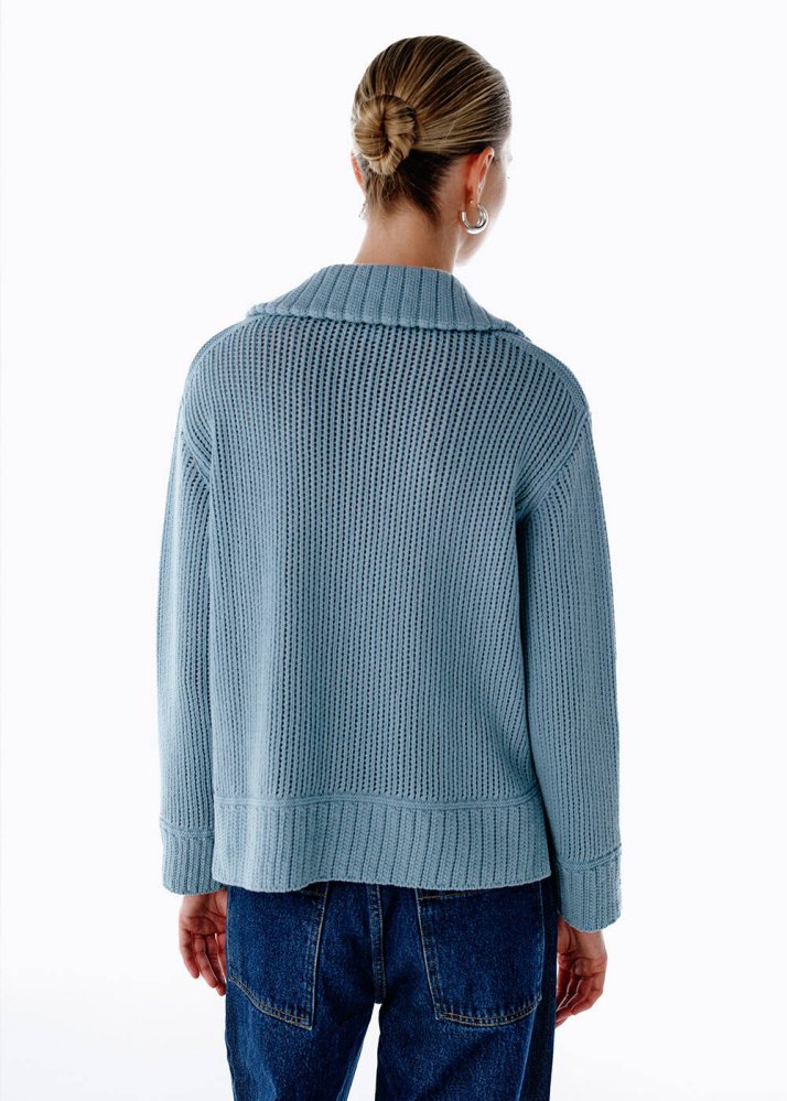 RETRO BLUE ORGANIC COTTON CASHMERE BLEND SWEATER