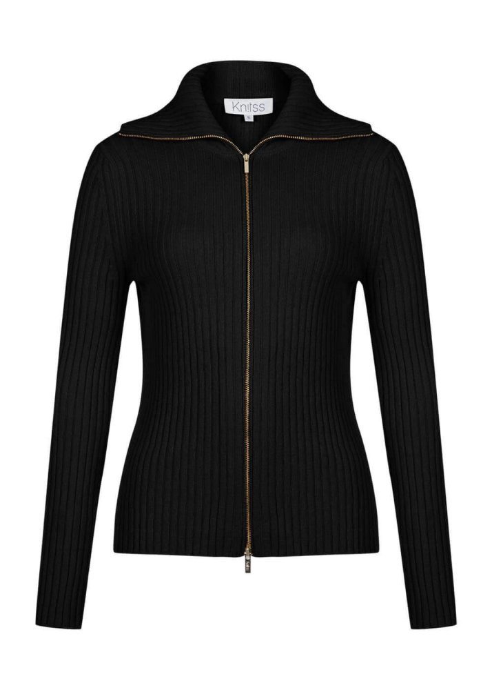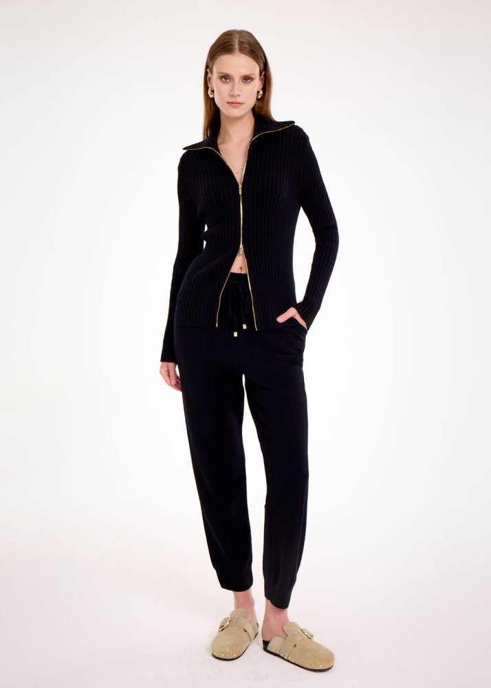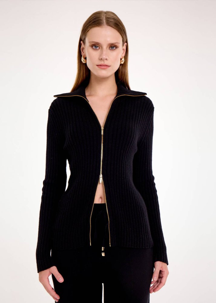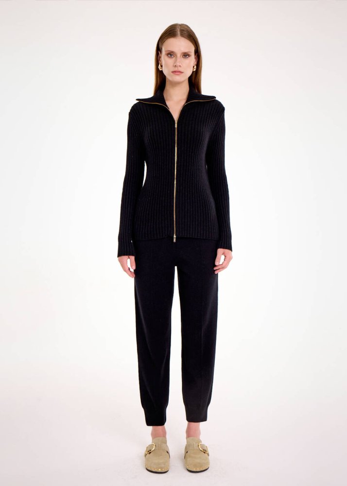 RIBBED BLACK MERINO KNIT CARDIGAN