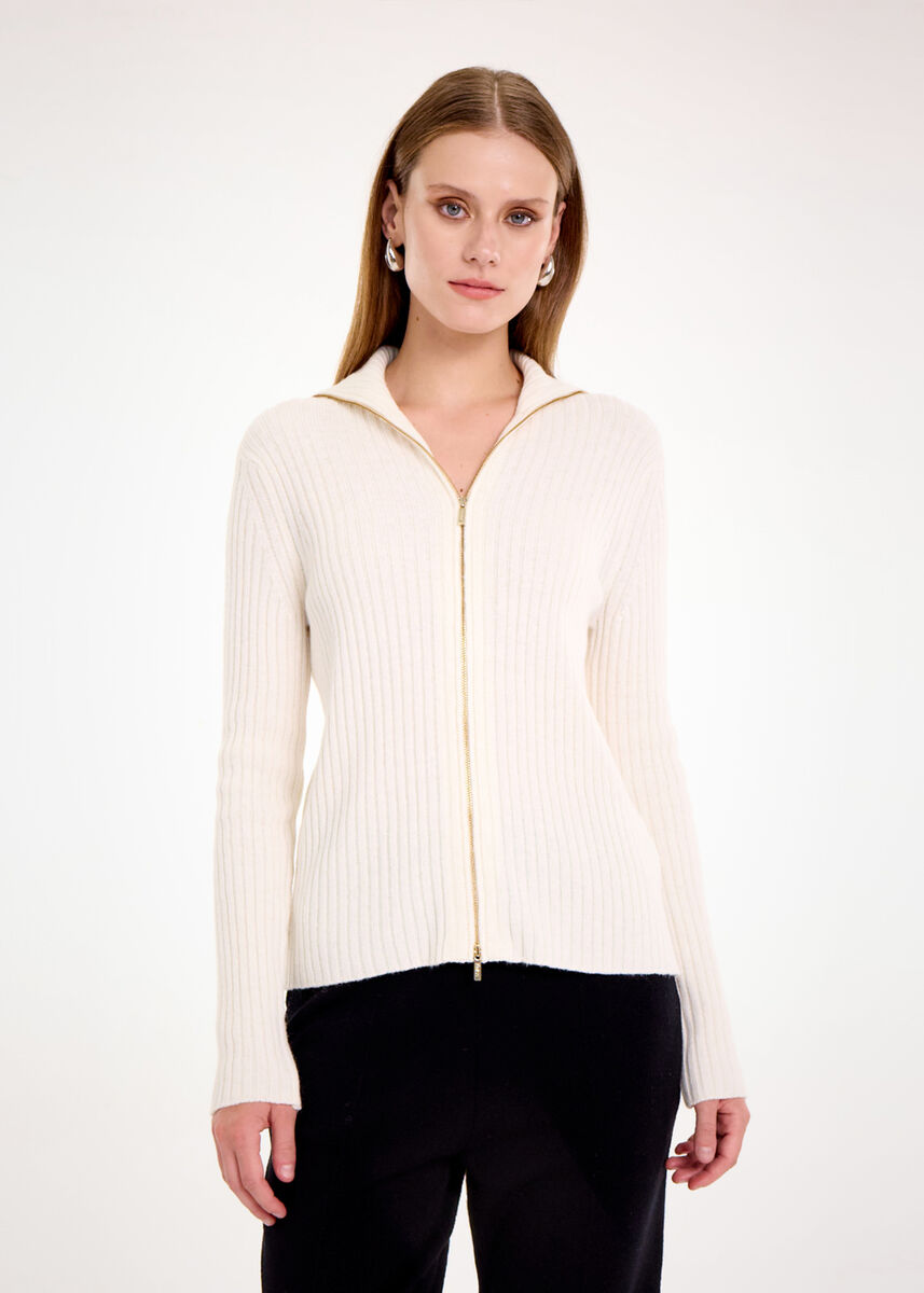 RIBBED ECRU MERINO KNIT CARDIGAN