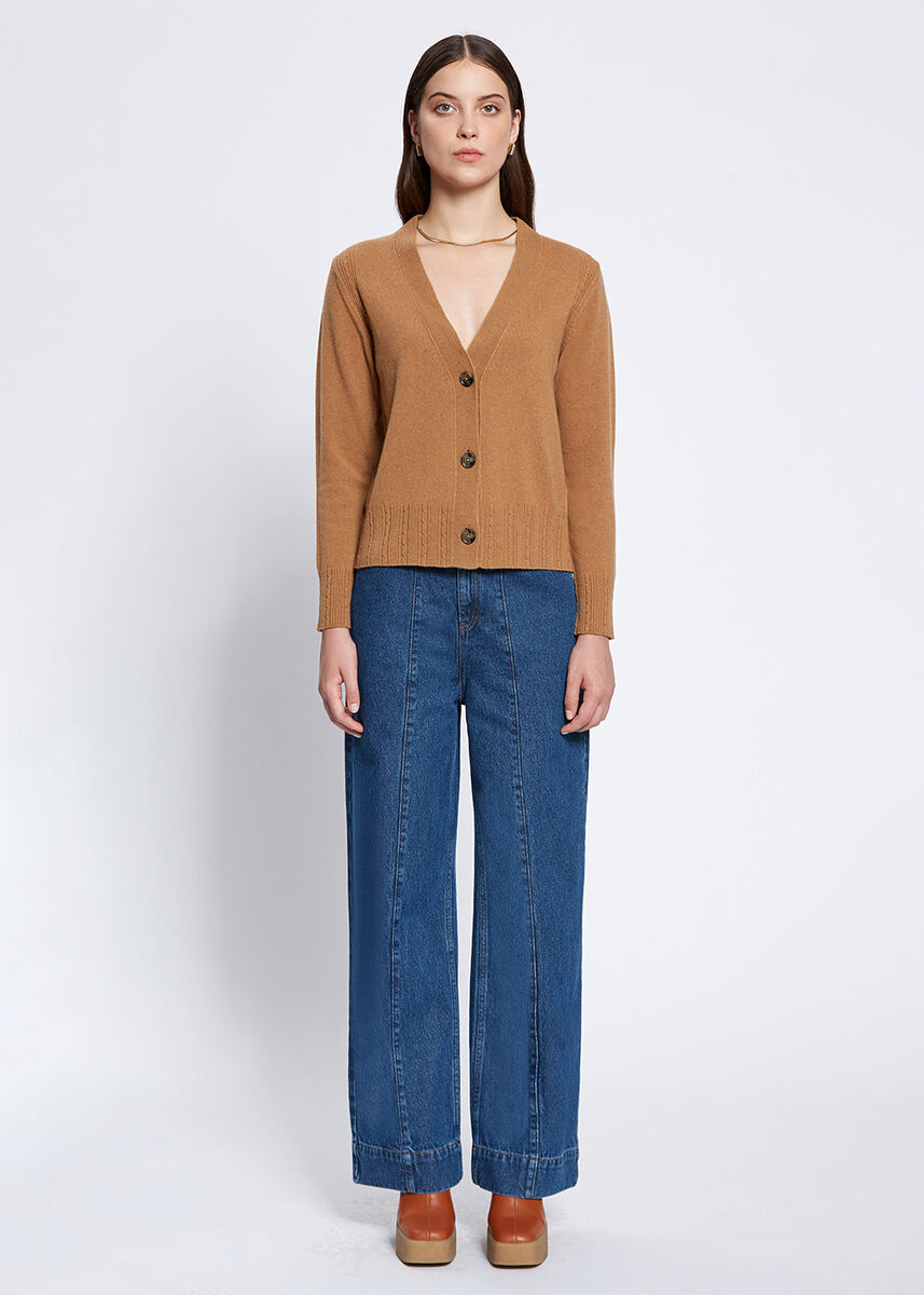 Saç örgüsü deseninin sanatsal bir duyarlılıkla işlendiği düğmeli camel hırka, kaşmirli yün içeriği ile uzun yıllar kışlık kombinlerinize değer katar. Yumuşacık dokusu ve terletmeden ısıtan yapısı ile hayranlık uyandıran camel hırka, Knitss trikolarına özgü zarif detayları ve rahat kesimi ile konforu ön planda tutan bir şıklık anlayışının temsilcisidir.