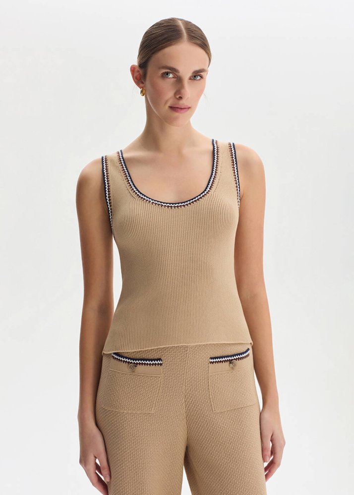 SAND ORGANIC MERSERISE COTTON KNIT TOP