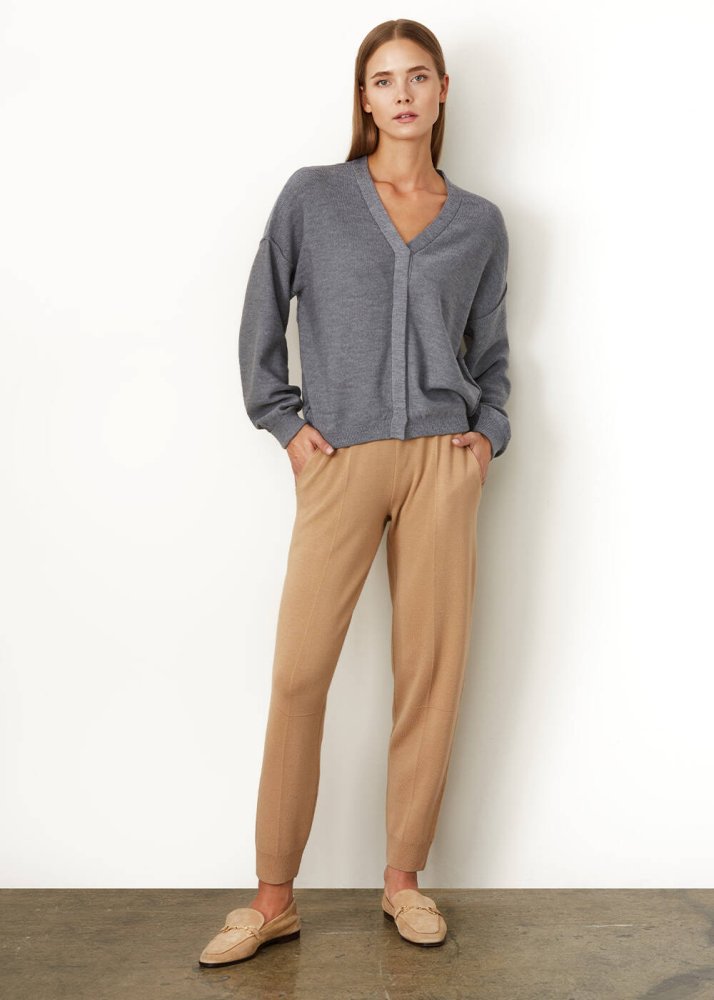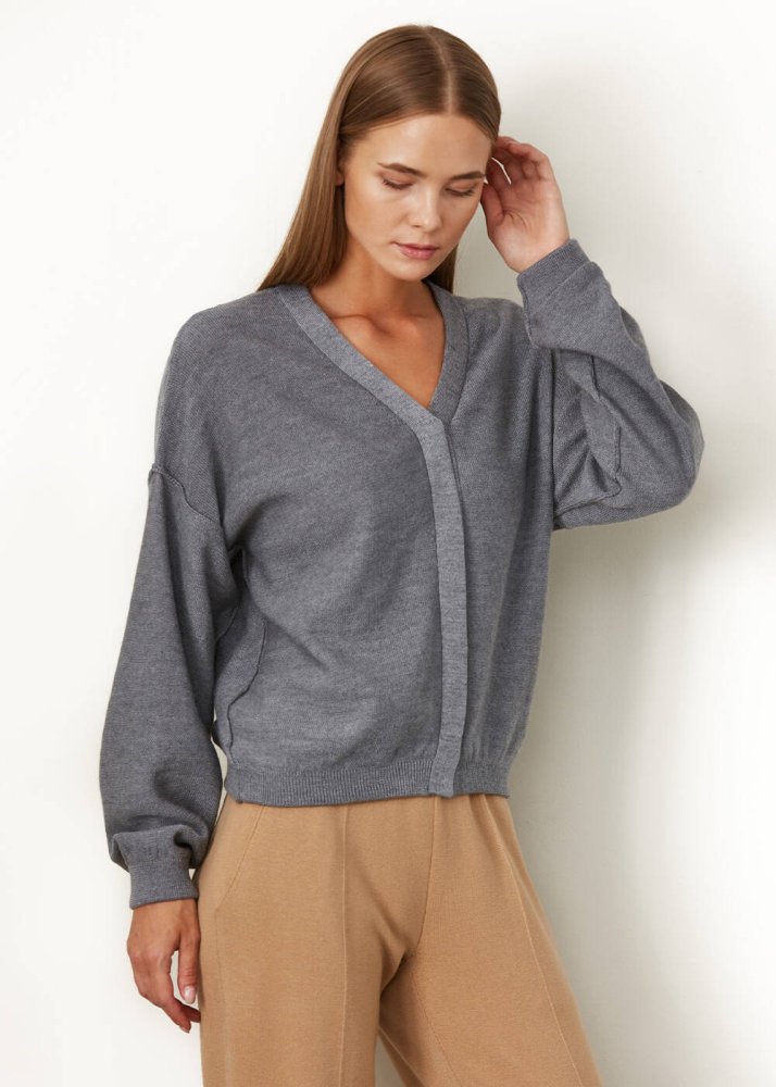Seamless Buttoned Pure Merino Wool Gray Cardigan