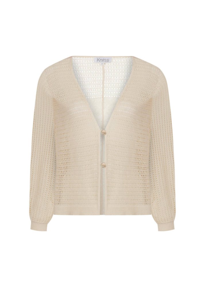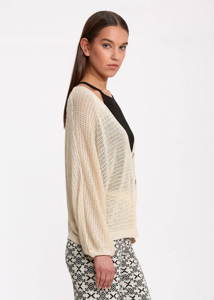Seashell Button Linen Sand Knit Cardigan