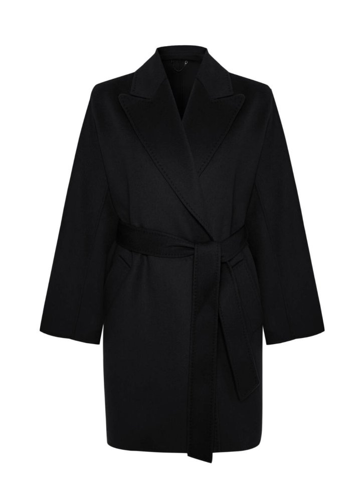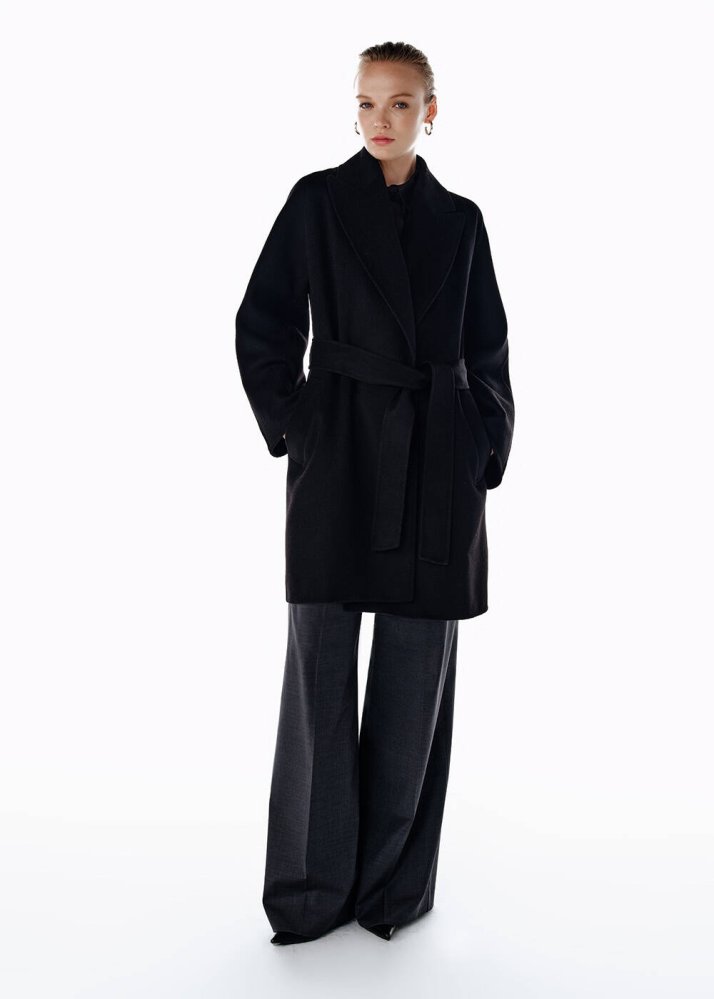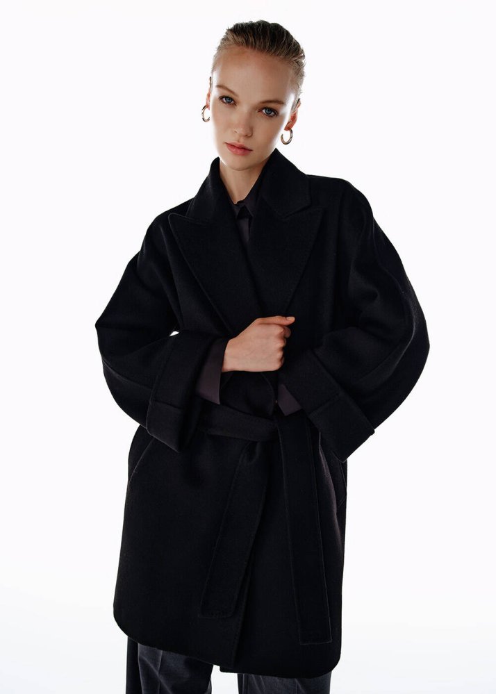 SELF BELTED WOOL COAT BLACK