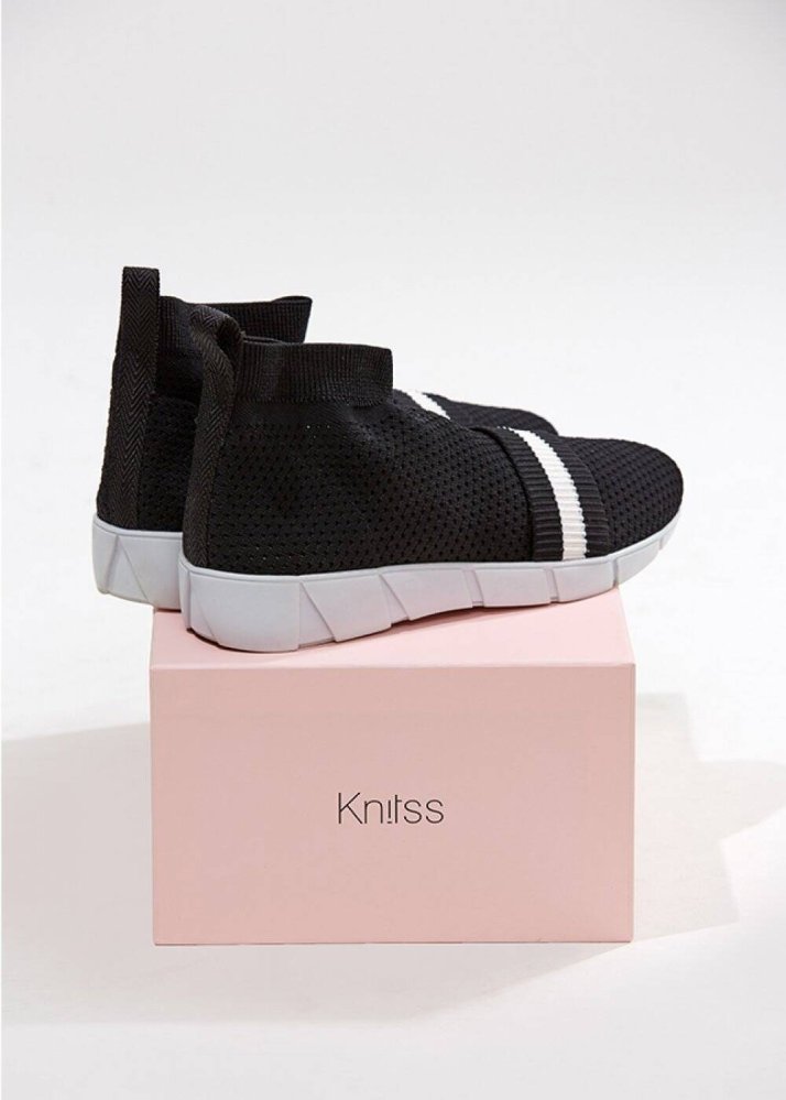 Şerit Bantlı Siyah Triko Sneakers