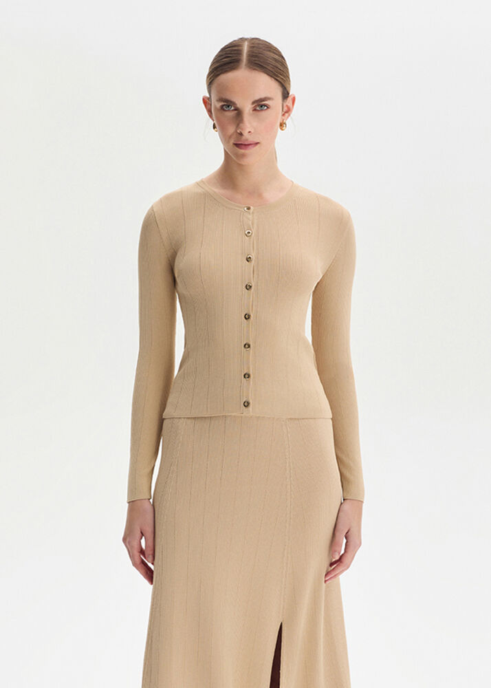 Kahverengi Organik Pamuk Kaşmir Karışımlı Triko Hırka