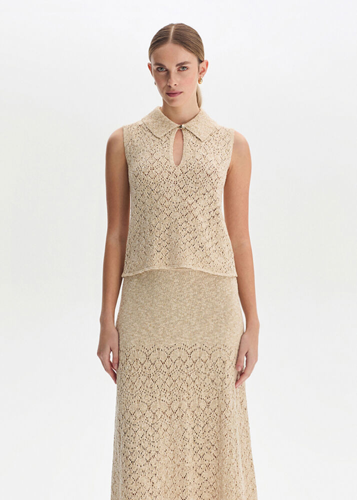 Ekru Ultrafıne Merino Yün Karışımlı Triko