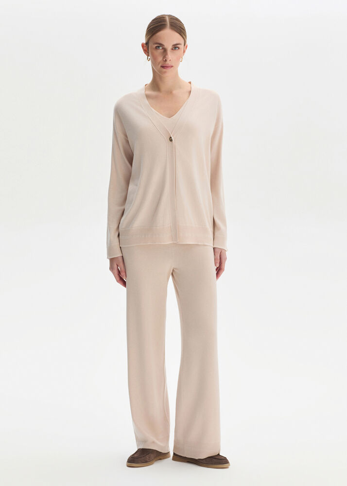 COTTON SILK BLEND NATURAL KNIT PANTS