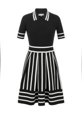 Kontrastın enerjisi, zarafetin gücüyle birleşiyor. Siyah beyaz çizgilerin modern dinamizmiyle öne çıkan pileli triko elbise, tek parçada iddialı bir stil sunuyor. Akışkan formu ve hafif dokusu sayesinde gün boyu rahatlık sağlarken, kontrast çizgiler şıklığınıza güçlü bir ritim katıyor. İş toplantılarında ceketle tamamlanabilir, akşam davetlerinde topuklularla elegant bir görünüm elde edebilirsiniz.