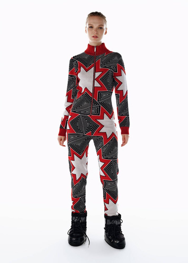Siyah İkonik AprÈs-Skı Yıldız Desenli Triko Tulum