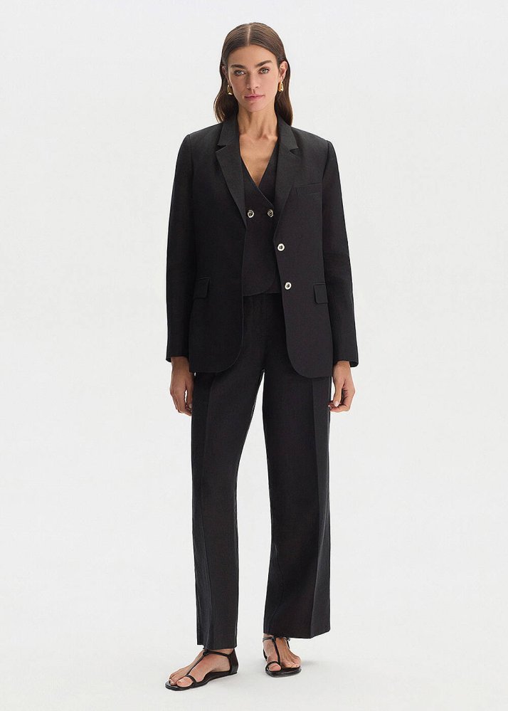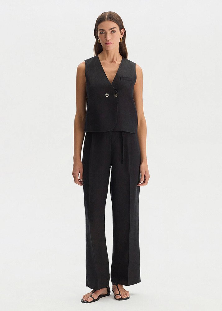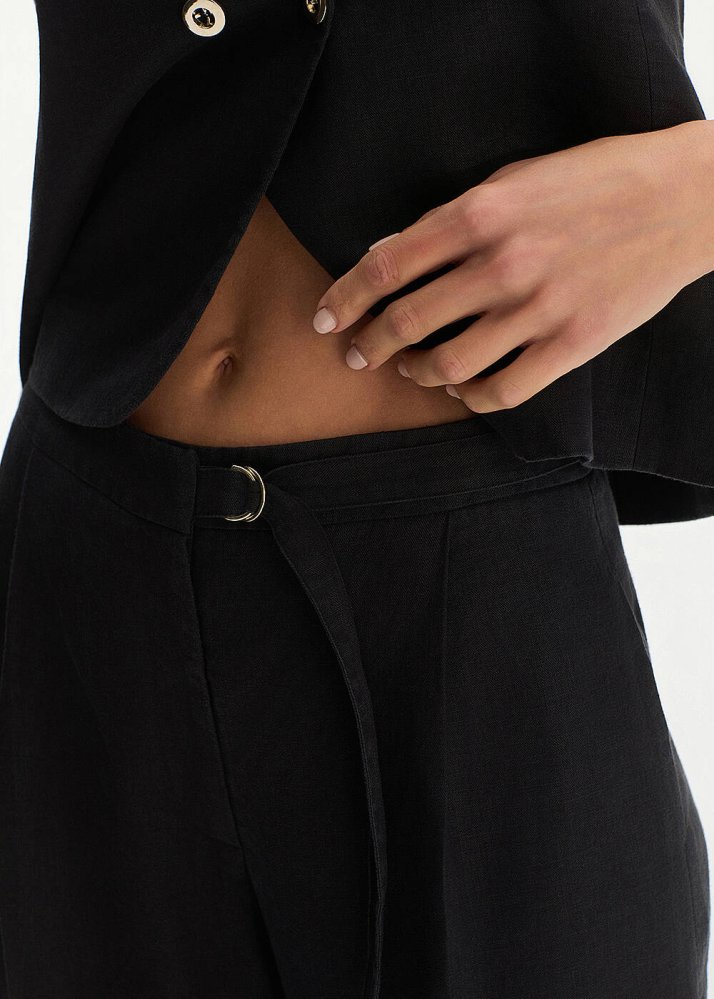 Siyah Keten Pileli Pantolon
