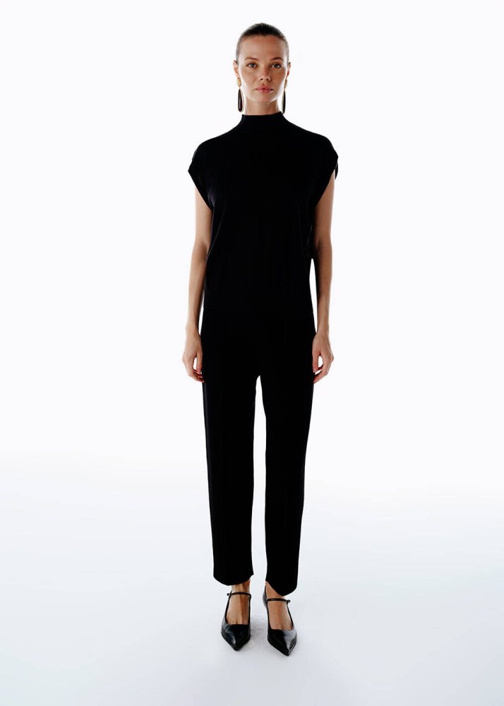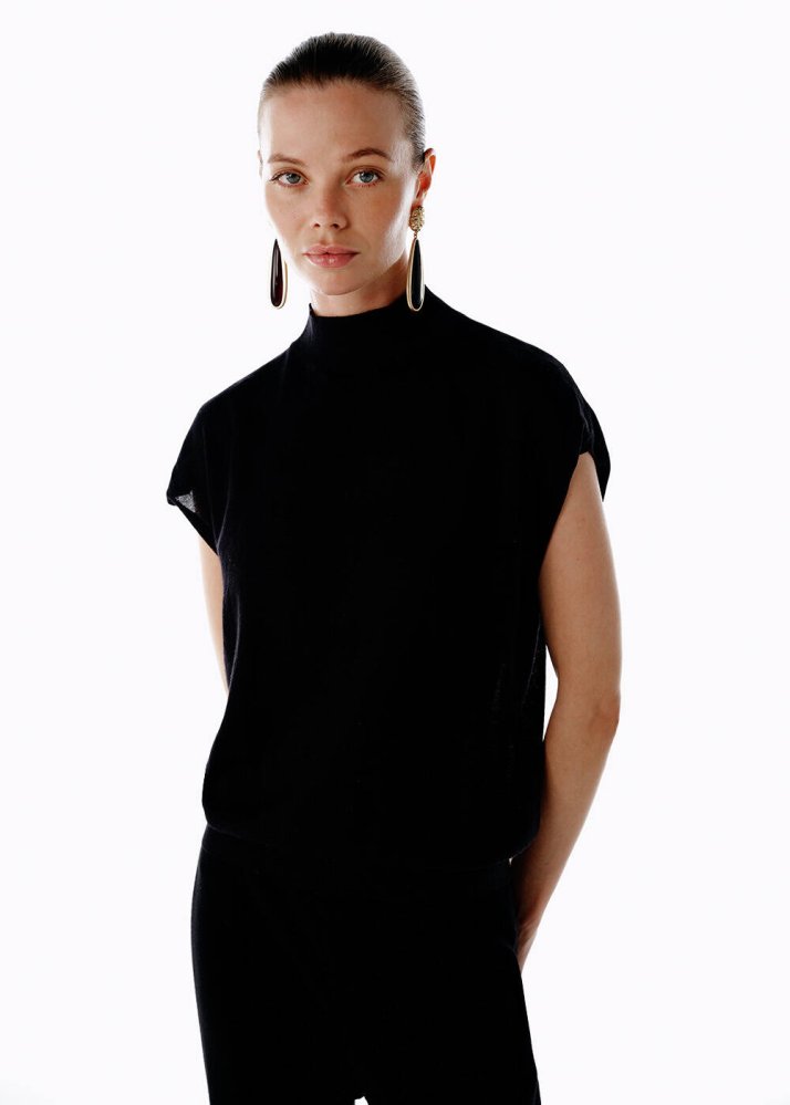 Siyah Merino Yün Karışımlı Triko Üst