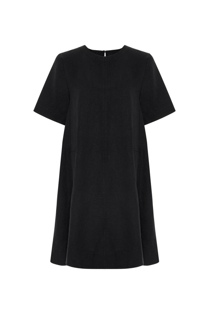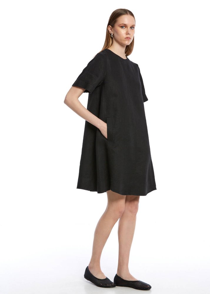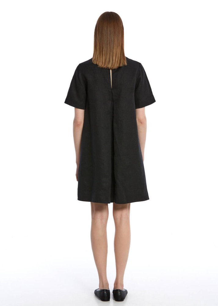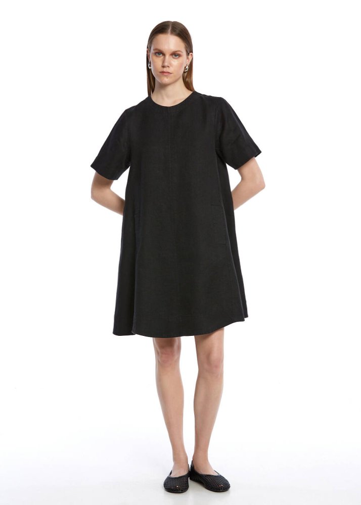 Siyah Mini Keten Elbise