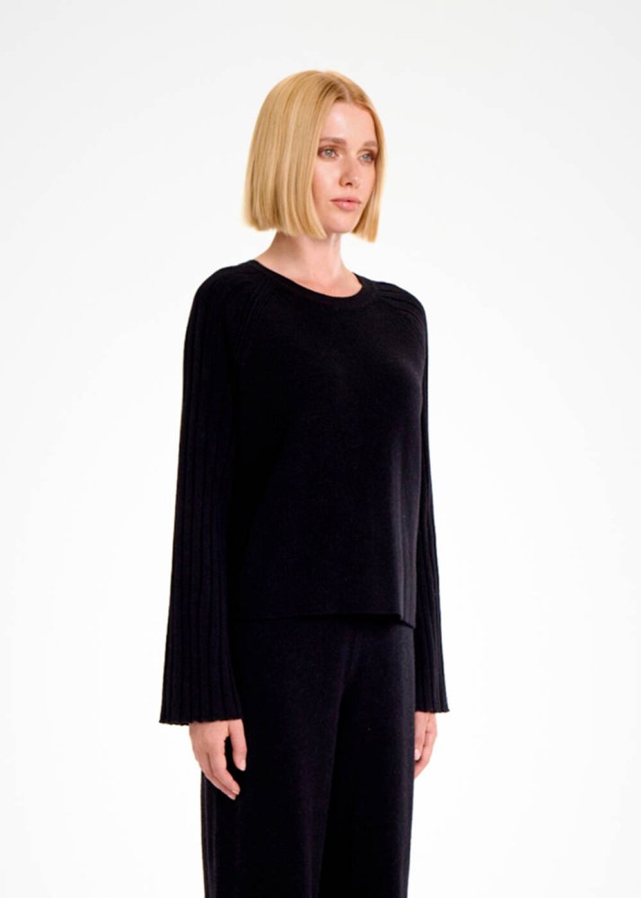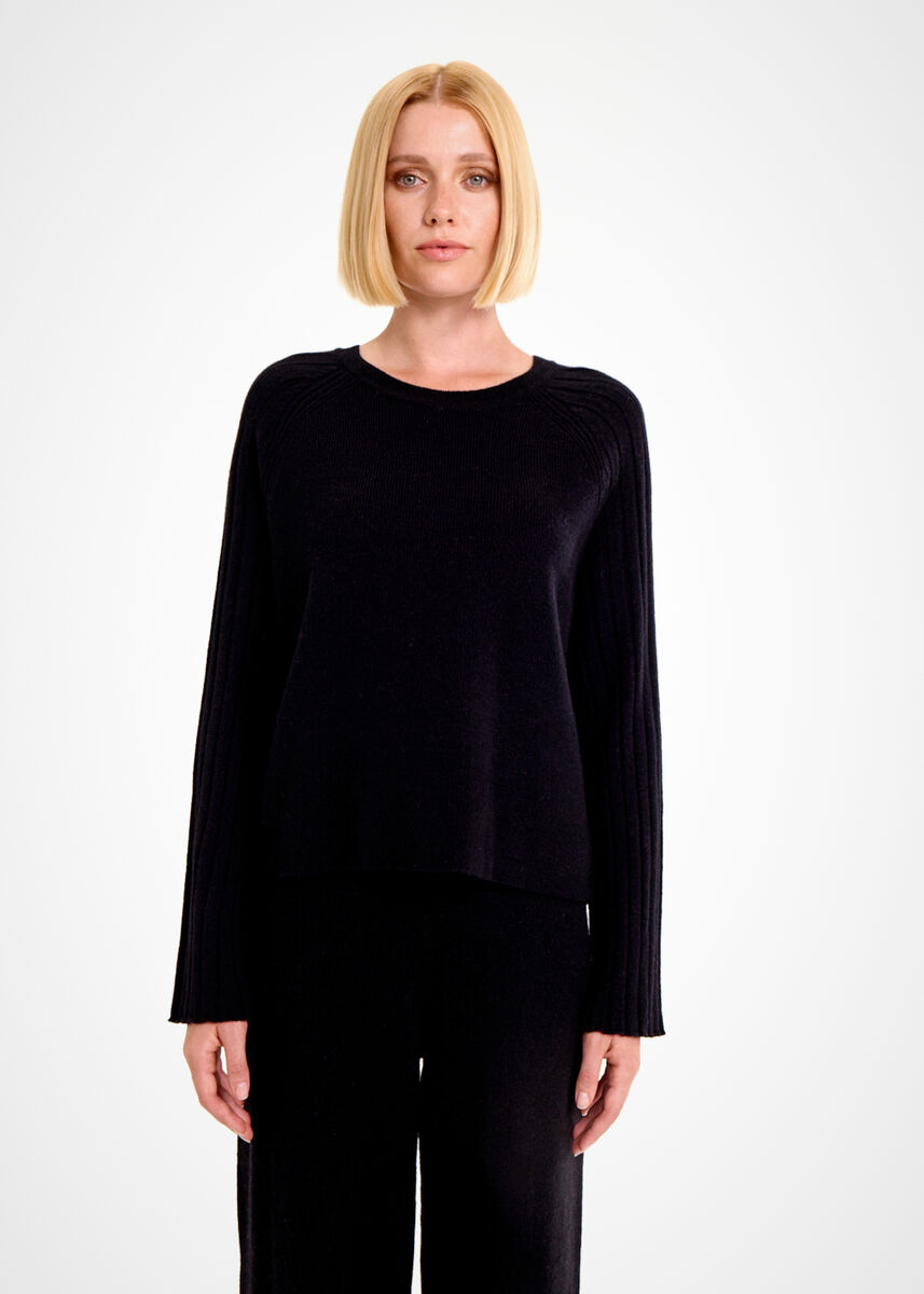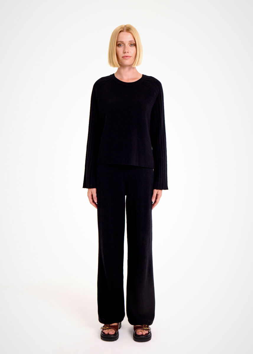 Geri dönüştürülmüş kaşmir yünlü siyah oversize kazak, sıcacık tutan yumuşak yapısı ile kışlık kombinlerinizin gözde parçalarından olmaya adaydır. Yuvarlak yaka siyah kaşmir kazak, kollarındaki zarif triko detayları, saf kalitesi, farklı tarzlara kolaylıkla uyum sağlayan kullanışlı modeli ve maksimum konforu ile giyim dolabınıza değer katar.