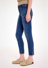 Knitss mavi skinny pantolon, çağdaş paça boyu ve yırtmaç detayıyla dikkat çekiyor. Nefes alan pamuklu denim kumaşı ile konfor sunan mavi skinny pantolon, esneyen yapısı sayesinde farklı vücut tiplerine kusursuz uyum sağlar. 5 cepli fonksiyonel tasarımı, zamansız modeli, pamuk kalitesiyle dolabınızın uzun yıllar vazgeçilmezlerinden olmaya adaydır.