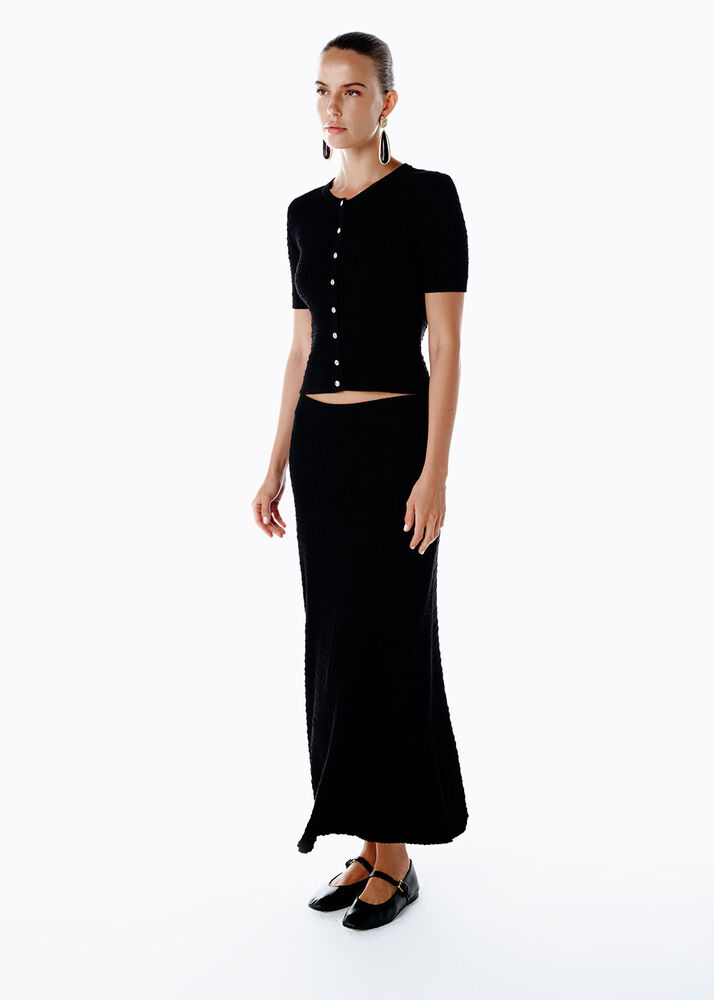 CABLE CONTRAST MIDI LEG BLACK KNIT SKIRT