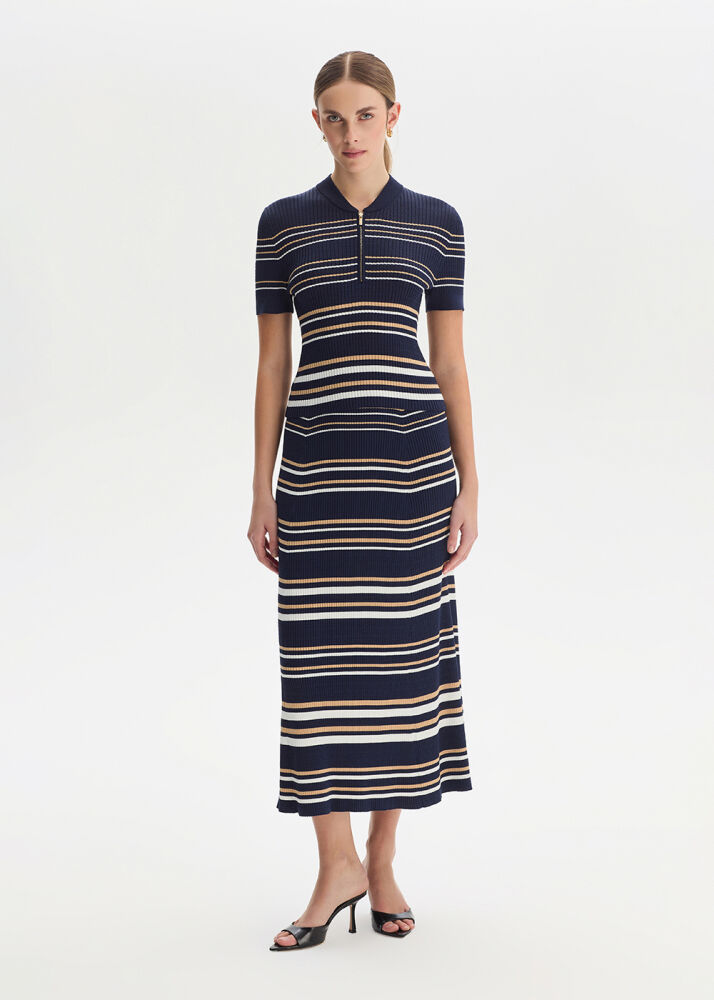 SAND WHITE STRIPE NAVY KNIT SKIRT