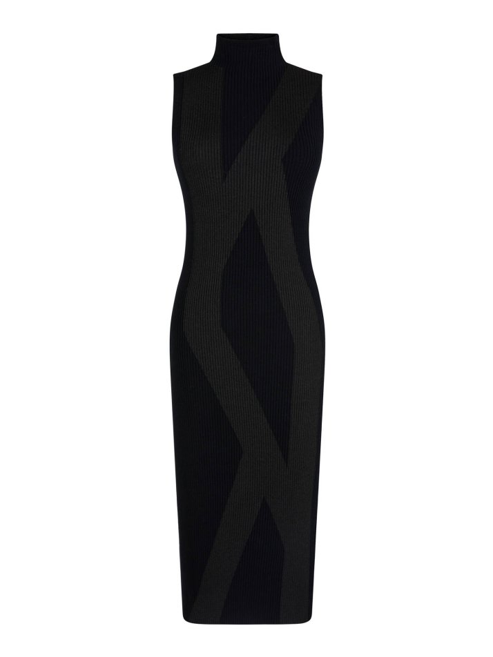 Sleeveless Black Midi Knit Dress