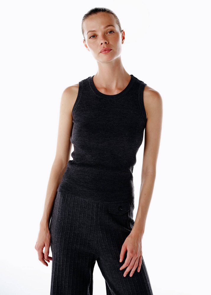 SLEEVELESS MERINO WOOL RICH BLEND KNIT TOP DARK GREY