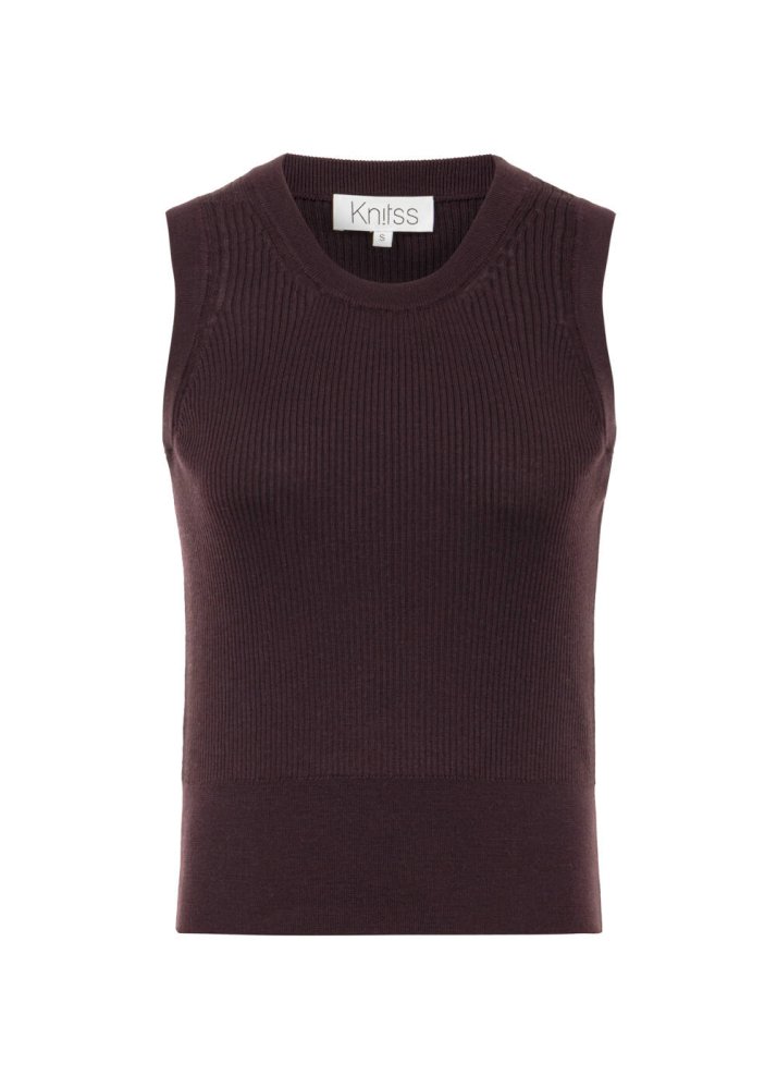 SLEEVELESS MERINO WOOL RICH BLEND KNIT TOP PLUM