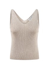Her kadının giyim dolabında bulunması gereken bej rengi v yaka kolsuz üstü keşfedin. Geri dönüştürülmüş İtalyan ipliklerinden üretilen bej üst, uzun yıllar ilk günkü formunu koruyan birinci sınıf kalitesi ile çok kullanışlıdır. Slim fit kalıbı, minimal şıklığı, triko konforu ve kullanışlılığı ile giyim dolabınızın favorilerinden olmaya adaydır.