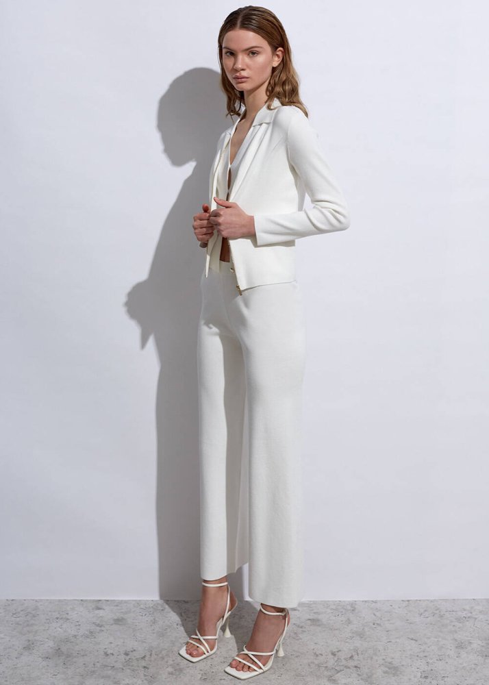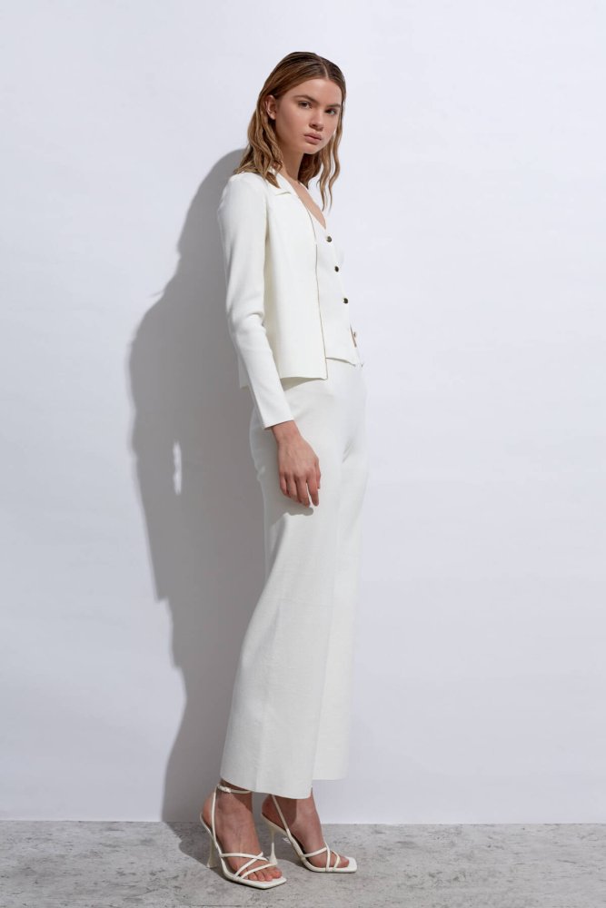 Sam Pants Apolet Detaylı Beyaz Triko Pantolon