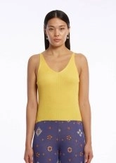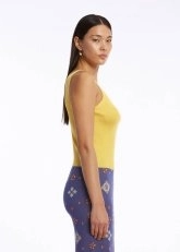 Yazın enerjisini yazlık kadın kıyafetlerine taşıyan v yaka askılı sarı triko üst, slim fit kalıbı ile de dinamik bir stil vadeder. Geri dönüştürülmüş sürdürülebilir İtalyan iplik kalitesi ile uzun yıllar ilk günkü canlılığını koruyan askılı sarı triko üst, hem spor hem ofis kombinlerine uyum sağlayan çağdaş stili ile de çok kullanışlıdır.