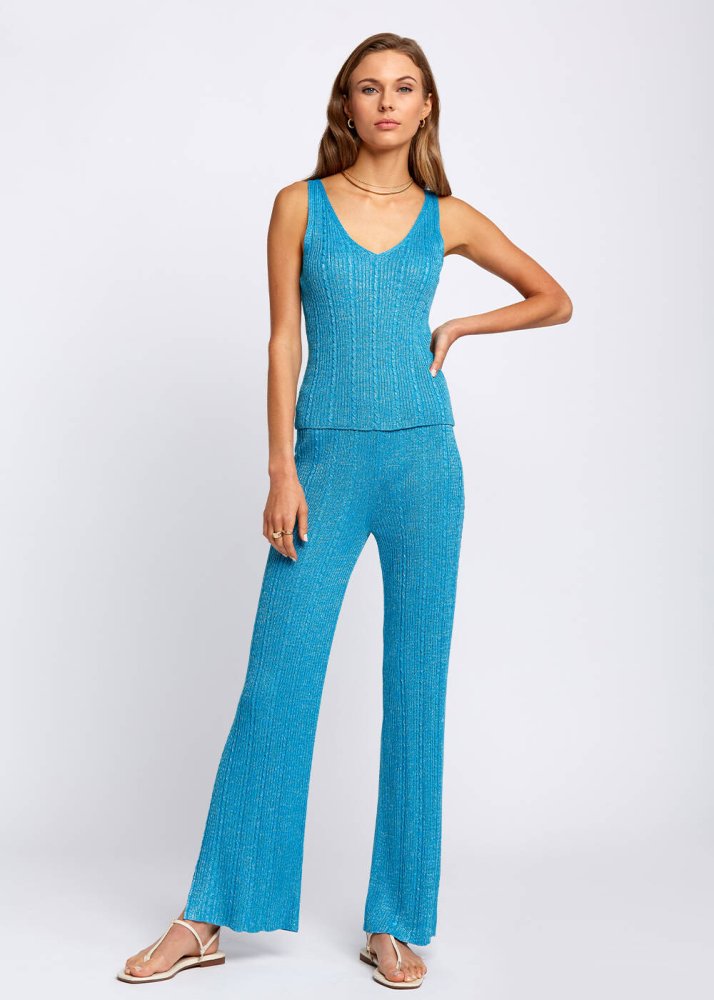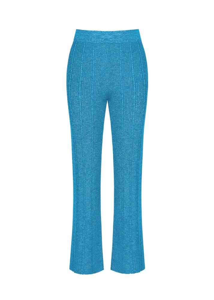 Slit Detailed Loose Fit Turquoise Knit Pants