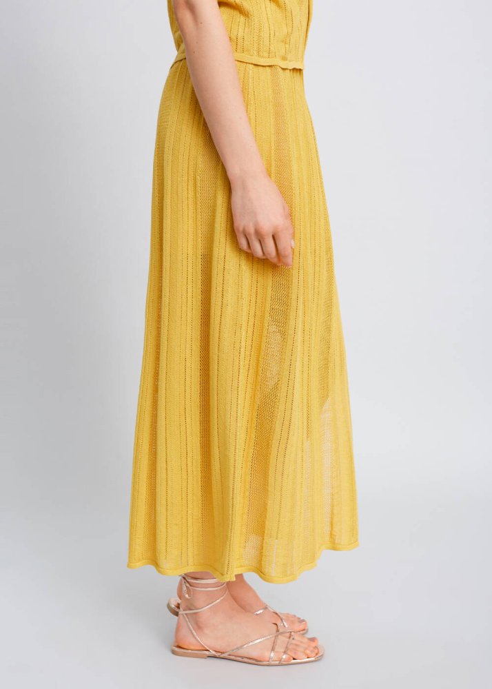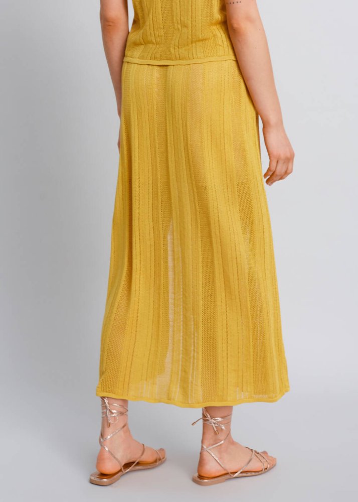 Slit Detailed Yellow Pointelle Knit Skirt