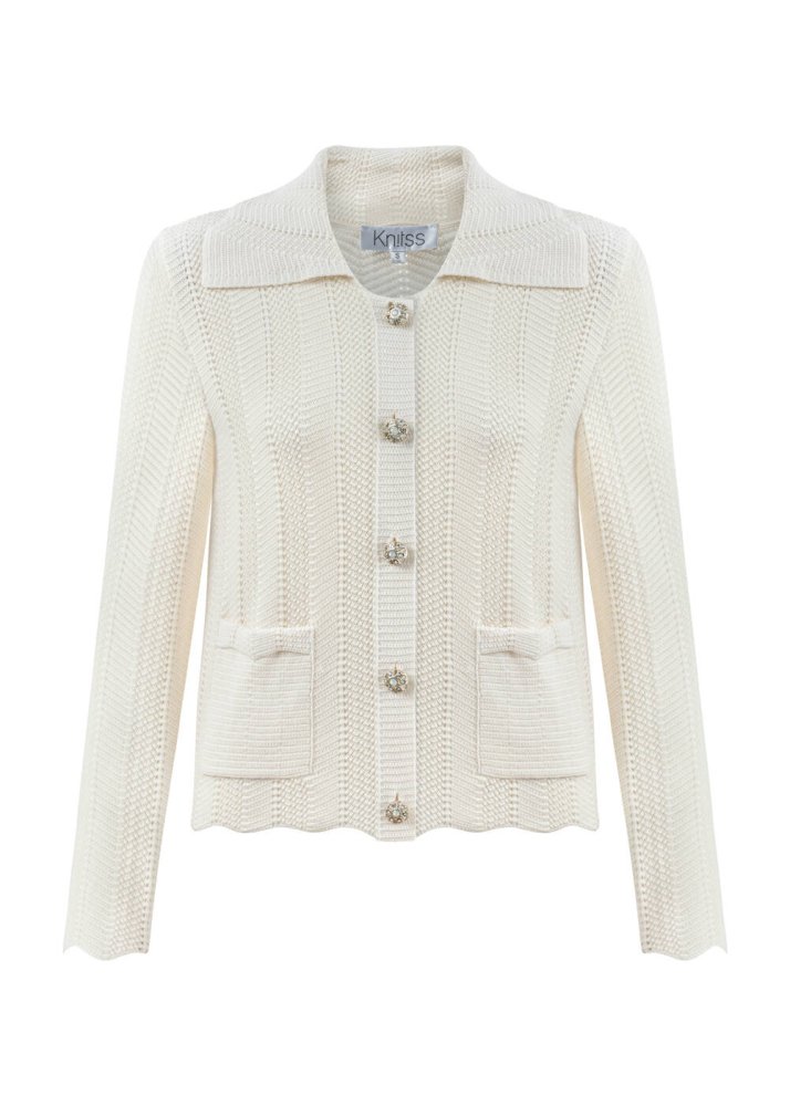 SPECIAL DESIGN JEWEL BUTTONED KNIT CARDIGAN