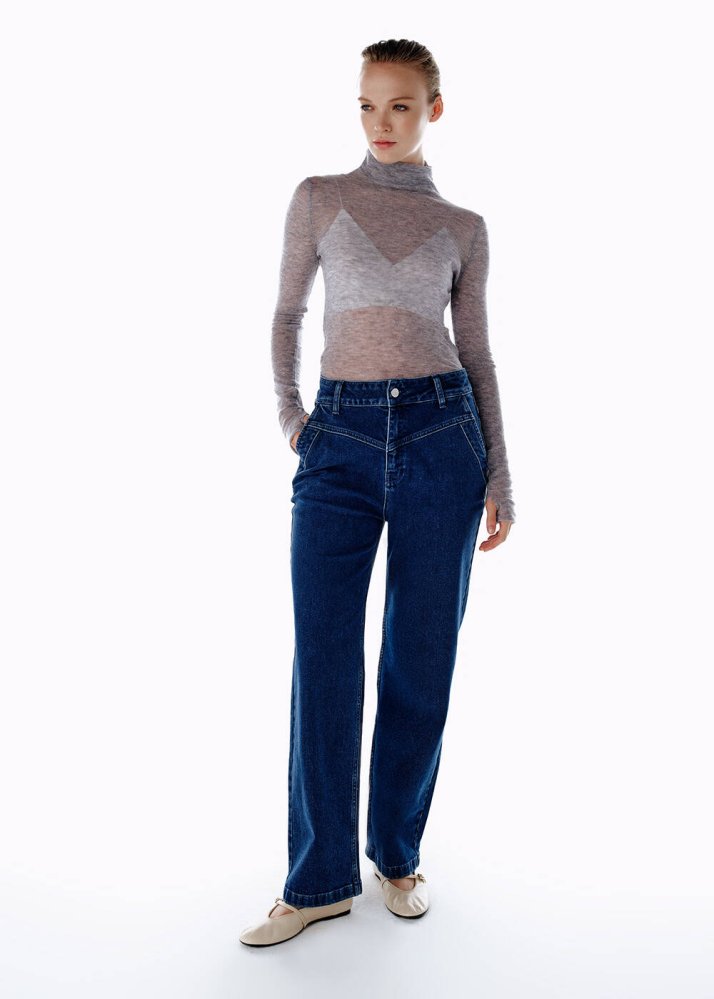 Straıght Leg Denim Pantolon Mavi
