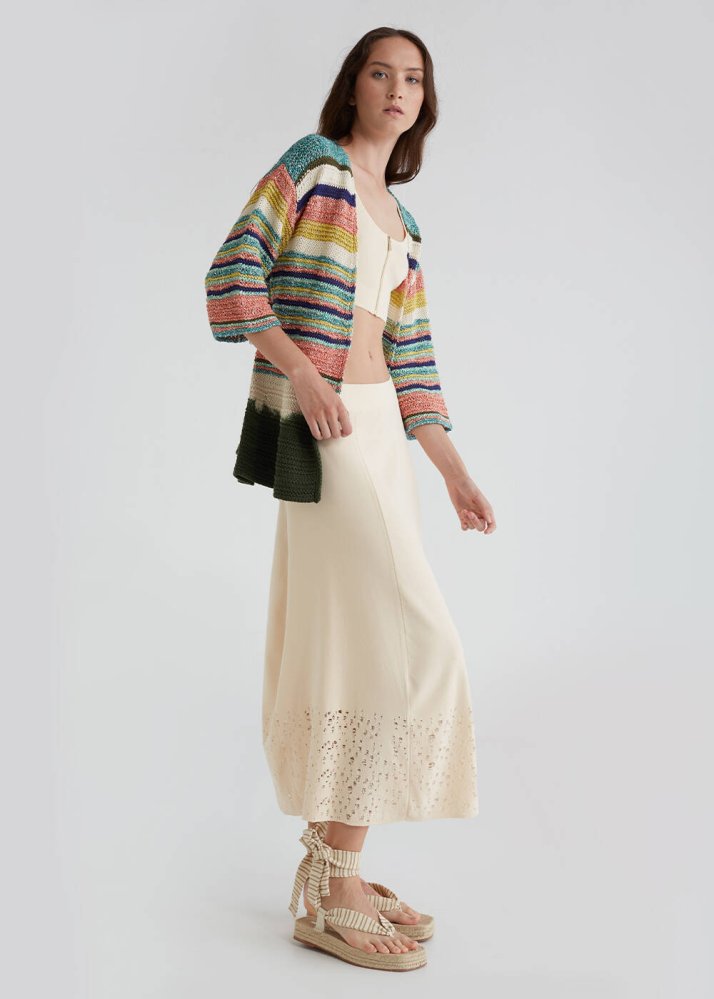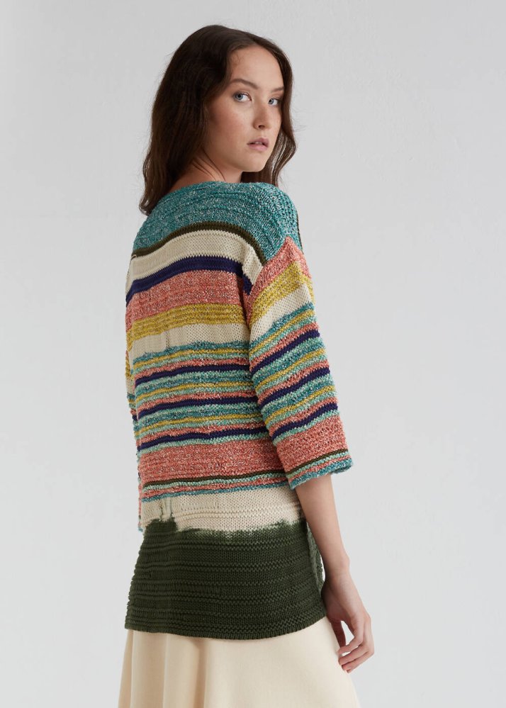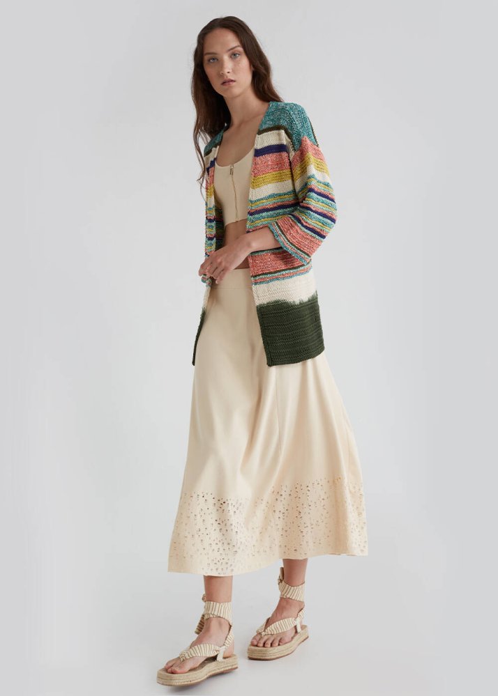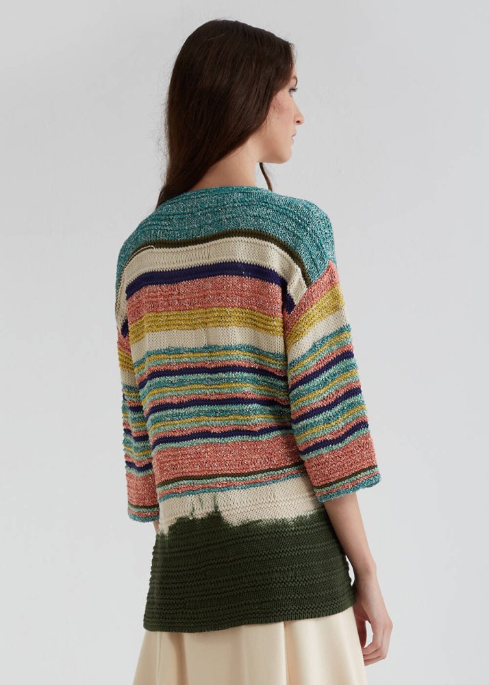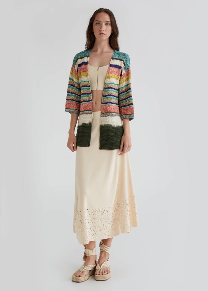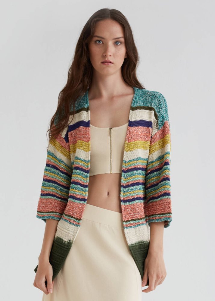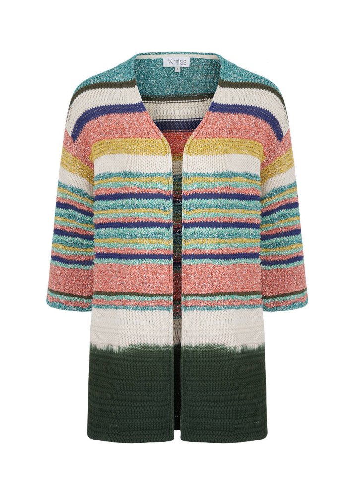 Striped Pattern Dip Dye Multicolor Knit Cardigan