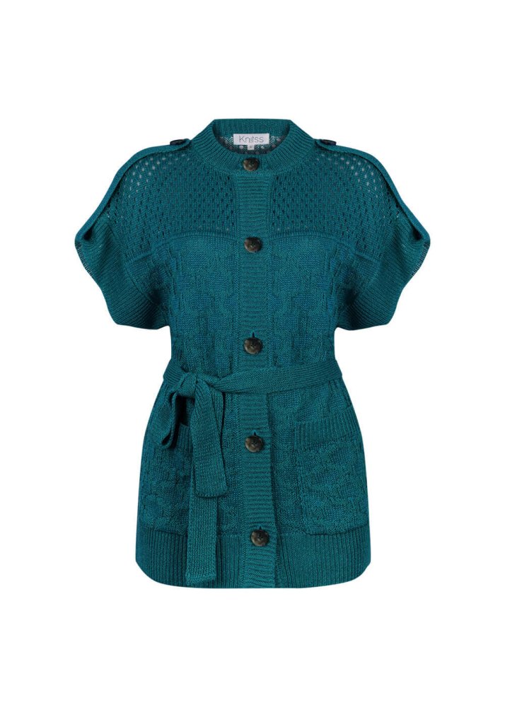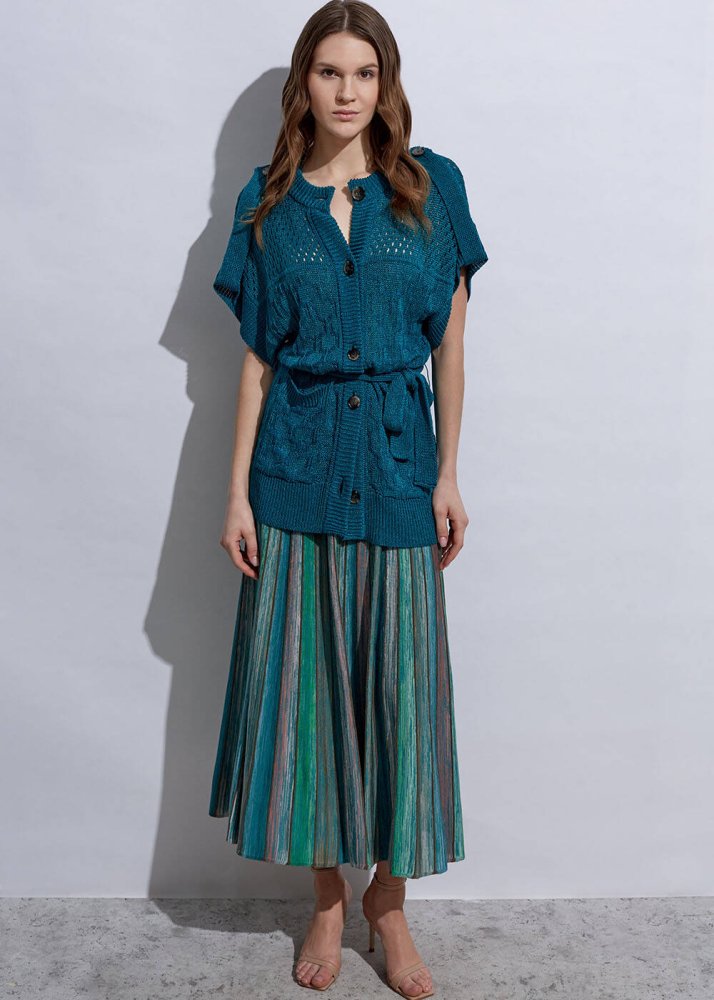 Structured Linen Verdigris Knıt Cardıgan