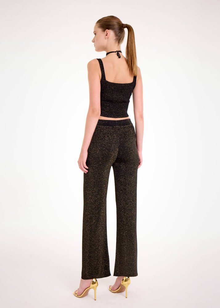 Özgür ruhunu feminen dokunuşlarla süsleyen kadınların kalp atışlarını hızlandıracak taş süslemeli altın ışıltılı triko crop üstü keşfedin. Özel ışıltılı triko kumaşı ve zarif taş süslemeli tasarımı ile ilk bakışta fark yaratan örgü üst, davet ve özel gün kombinlerinize Knitss ayrıcalığını taşır. Hem rahat hem iddialı hem de feminen şıklık için zamansız bir parçadır.
