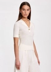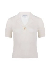 Taş düğme detayı ile kombinlerinize şıklık katacak triko üst, zamansız ekru renk ve regular fit kalıbı ile konforlu bir giyim deneyimi sunar. Geri dönüştürülmüş viskon ipliklerden üretilen triko üst modeli, business ve hafta sonu kombinlerinize Knitss şıklığı katacak mükemmel bir kombin tamamlayıcısıdır.