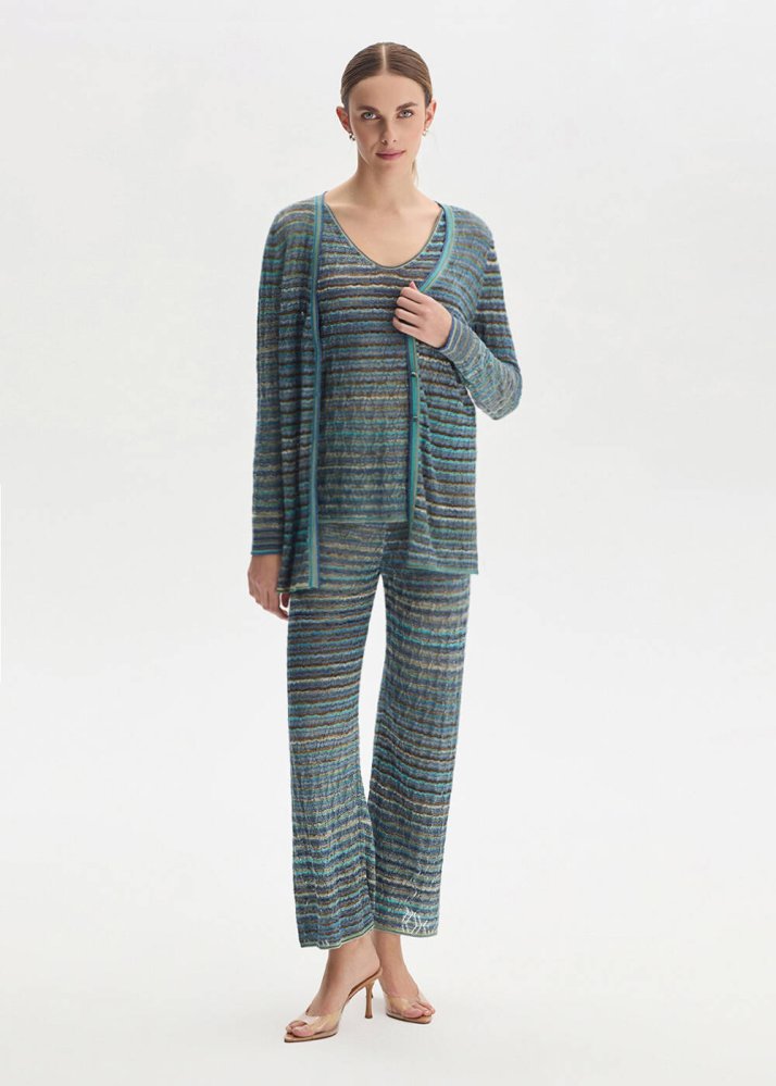 Cecilia Mavi Renk Geçişli Triko Hırka, serin tonların akışkan geçişleriyle dinamik bir görünüm sunar. V yaka formu ve midi boy kesimiyle zarif bir siluet oluştururken, ince ışıltılı iplikler tasarıma hafif bir parlaklık katar. Günlük kombinlerden daha özenli görünümlere uzanan, modern ve çok yönlü bir parçadır.