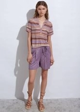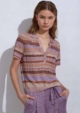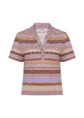 Polo yaka triko üst, geri dönüştürülmüş viskon ipliklerden üretilmiştir. Polo yaka tasarımına sahip olan kadın triko üst, taşlı düğmelerle süslenmiş olup, rahat bir kalıba sahiptir. Şık ve modern bir görünüm sunan triko üst mdoeli, günlük ve business stilinize kolaylıkla uyum sağlar.