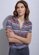 Oceania Polo TopPolo yaka mavi triko üst, taşlı düğmelerle süslenmiş olup, rahat bir kalıba sahiptir. Geri dönüştürülmüş viskon ipliklerden üretilen triko üst modeli, günlük ve business stilinize kolaylıkla uyum sağlar. Ajur örgü detaylı triko üst, koleksiyonda yer alan pantolon ve şortlarla kolaylıkla kombinlenebilmektedir.