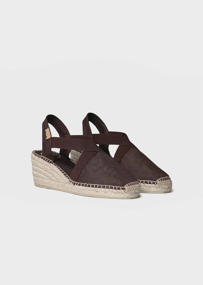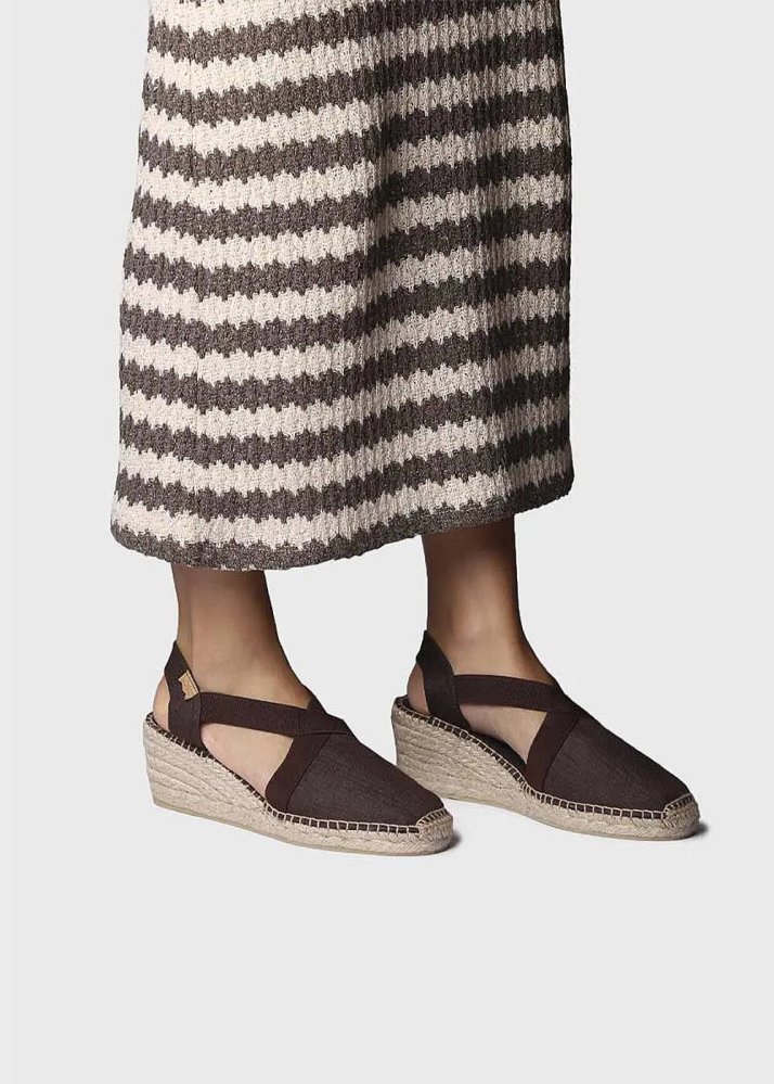 • Triton kadın espadril, parlak apreli pamuklu kumaştan yapılmıştır.