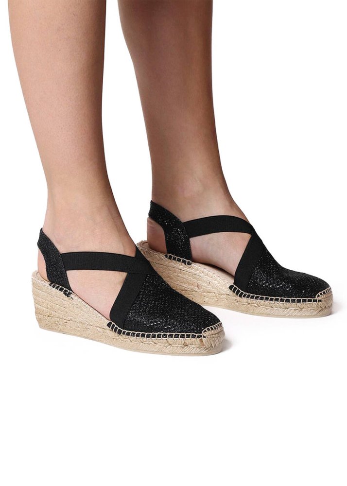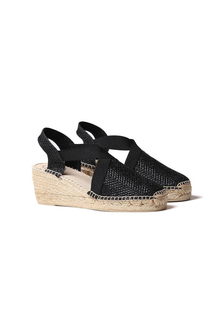 Toni Pons Dolgu Topuk Çapraz Bant Espadrıl Siyah