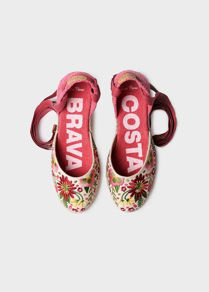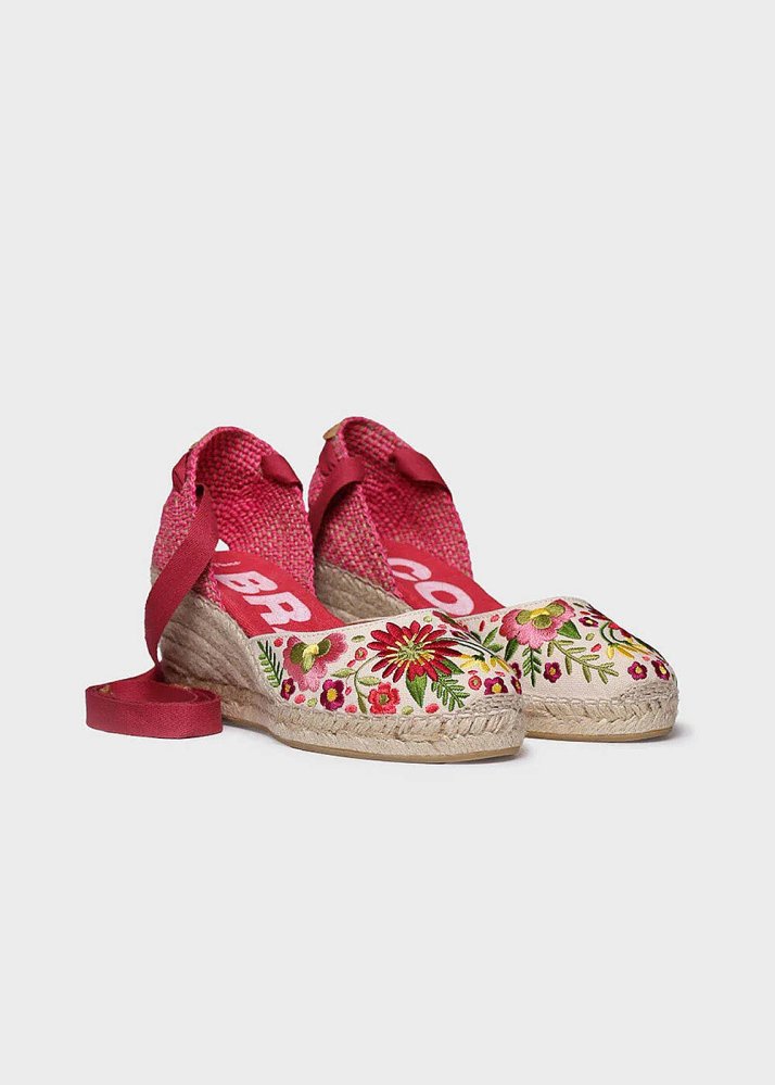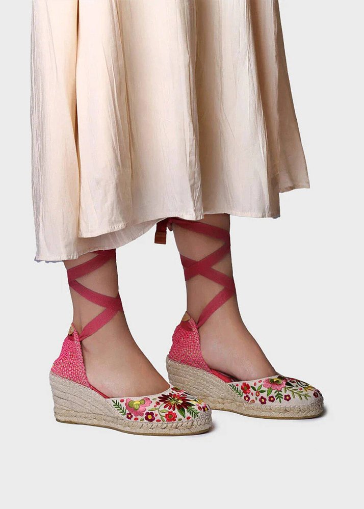 Toni Pons Embroidered Pink Wedge Espadrilles