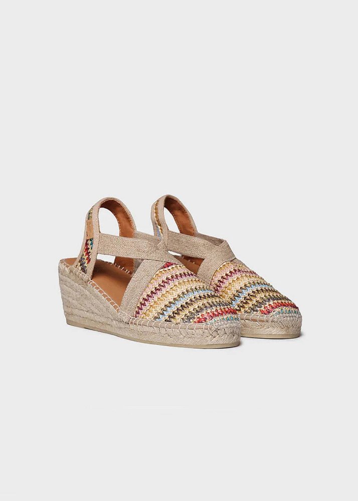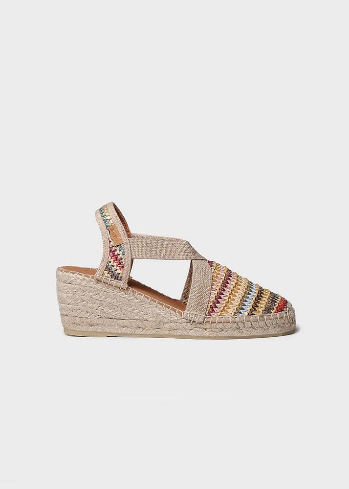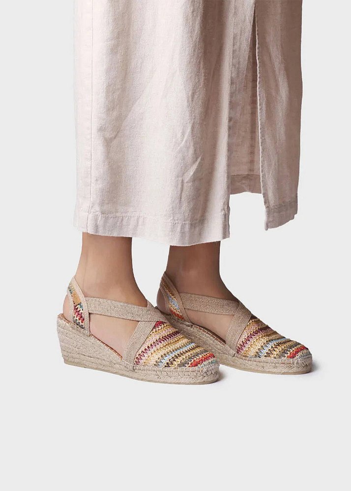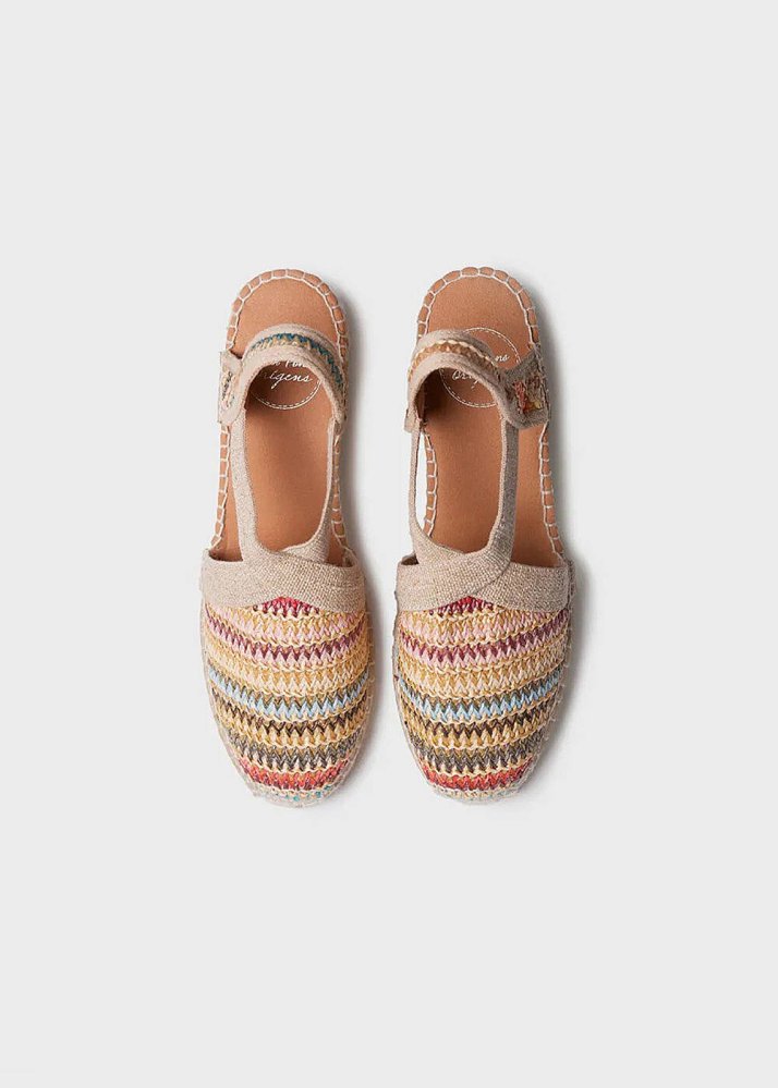 • Triton kadın espadril, parlak apreli pamuklu kumaştan yapılmıştır.