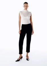 Siyah triko pantolon, yalın çizgileri ve akıcı dokusuyla şehirli kadının gardırobunda vazgeçilmez temel parçalarından biri. Esnek triko yapısı rahatlık sağlarken şehrin dinamizmine uyumlu bir esneklik kazandırıyor. Siyahın güçlü karakteri, pantolonu ister resmi ister rahat kombinlerin tamamlayıcısı haline getiriyor. Gardırobunu işlevsellik ve stil dengesiyle güçlendirmek isteyen kadınlar için ideal bir seçimdir.