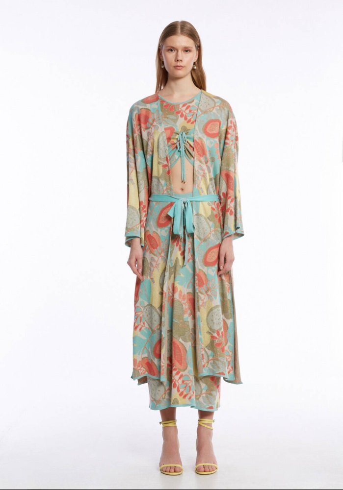TROPICAL PATTERN KNIT CAFTAN