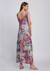 Kayık yaka triko elbise, sırt dekoltesi ve bağlama detayı ile sıcak yaz günlerinde zahmetsiz şıklık sağlayacak mükemmel bir parçadır. Birinci sınıf İtalyan ipliklerinden üretilen triko elbise modeli, tropikal desenleri ile gardırobunuza enerji katacaktır. Yumuşak dokuya ve ışıltılı iplik detayına sahip tropikal desenli triko elbise, tatil stiliniz için ideal bir kombin tamamlayıcısıdır.