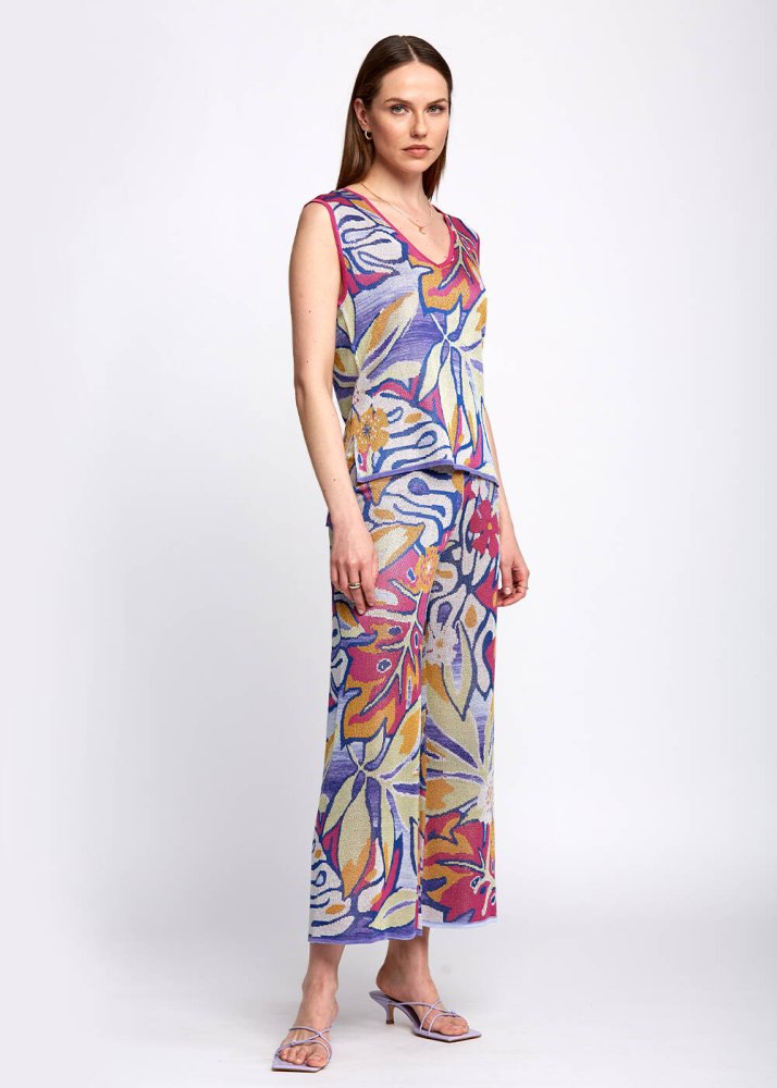 Tropikal deseni ile yaz stilinize Knitss ayrıcalığı katacak triko pantolon, ormanlarda biyolojik çeşitliliğin korunmasına yardımcı olan FSC sertifikalı İtalyan iplikten üretilmiştir. Çok renkli triko pantolon modeli, yumuşak dokusu ile hayranlık uyandıran bir parçadır. Takımı olan Camila Top ile kombinleyebileceğiniz triko pantolon, hafta içi ve hafta sonu stiliniz için ideal bir tamamlayıcıdır.