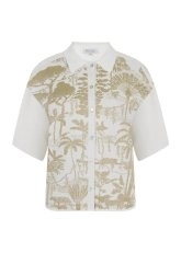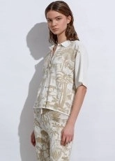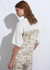 Tropikal desenleriyle yaz günlerinde ideal bir kombin tamamlayıcısı olacak triko üst, günlük stilinize kolaylıkla uyum sağlar. FSC sertifikalı elyaflardan tasarlanan ekru-bej triko üst modeli, file örgü ve düğme detayına sahiptir.